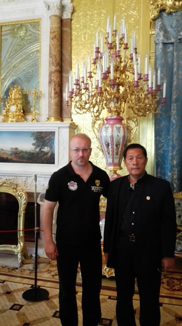 与俄罗斯少林五形八法拳联盟主席在圣彼得堡冬宫内合影